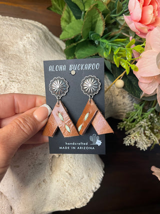 Hand-designed by Aloha Buckaroo, these earrings celebrate the artistry of the West in a truly unique way. Inspired by the traditional leather buckstitching found on saddles and tack, they bring that same rugged beauty into a wearable statement piece.