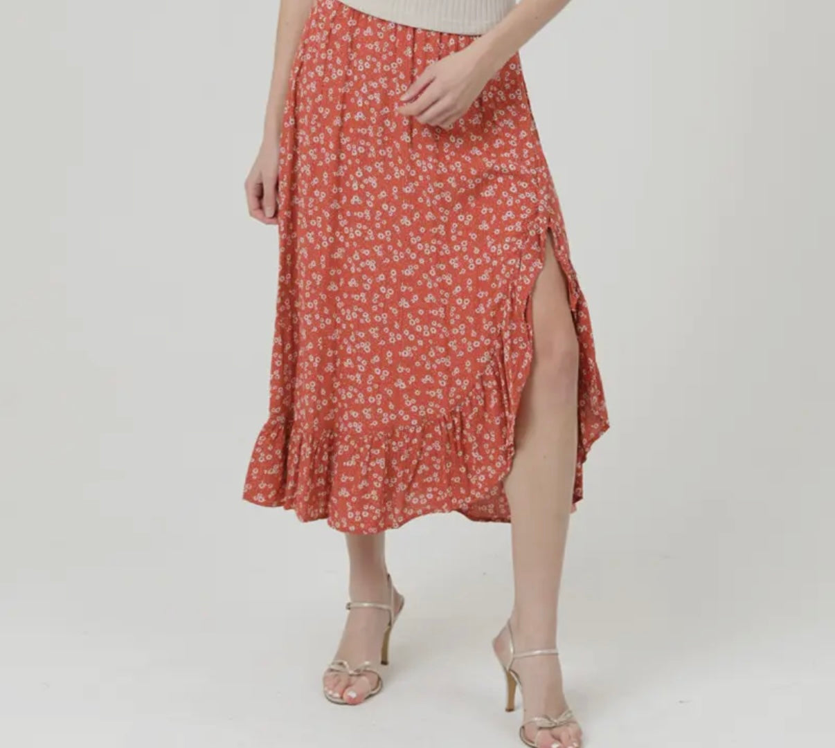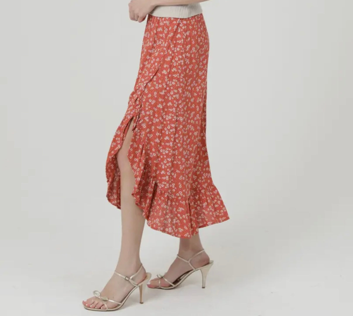 🌺 Rust Floral Ruffle Skirt